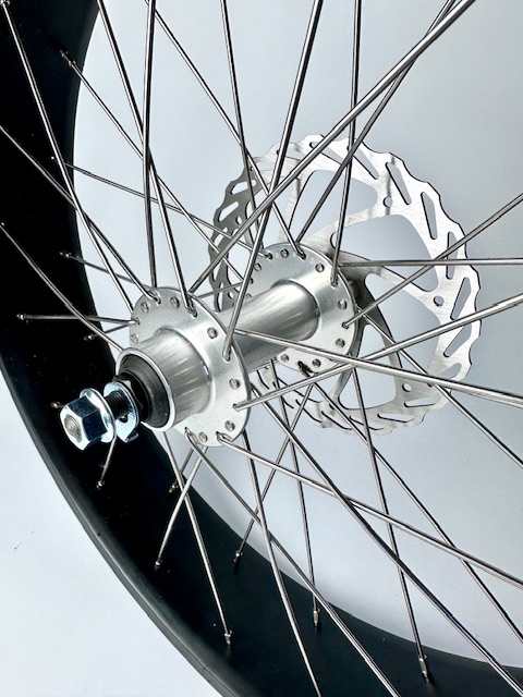 Produktinformationen "204 Vorderrad 20 x 4 - 80 mm breit, alufarbene Nabe mit Bremsscheibe"