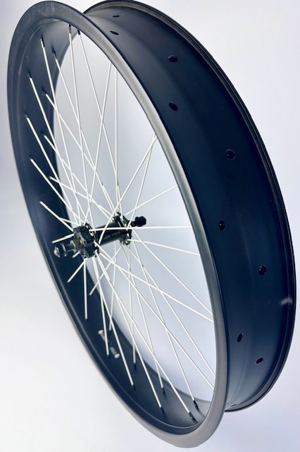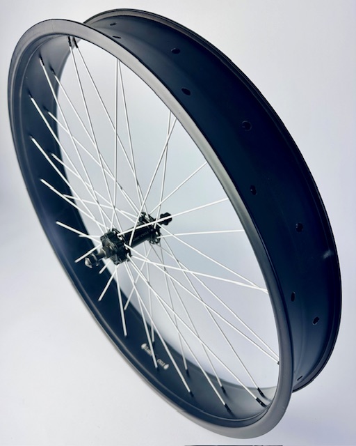 26 Vorderrad 82 mm Alufelge, Scheibenbremse mattschwarz, weiße Speichen