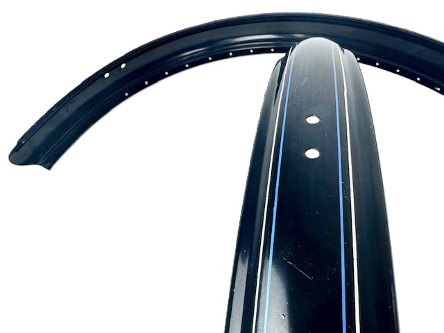 Dieses Set besteht aus klassischen, 55 mm breiten Schutzblechen aus schwarz lackiertem Stahl, ideal für die Restaurierung von Fahrrädern aus den 30er bis 60er Jahren (NOS - New Old Stock).