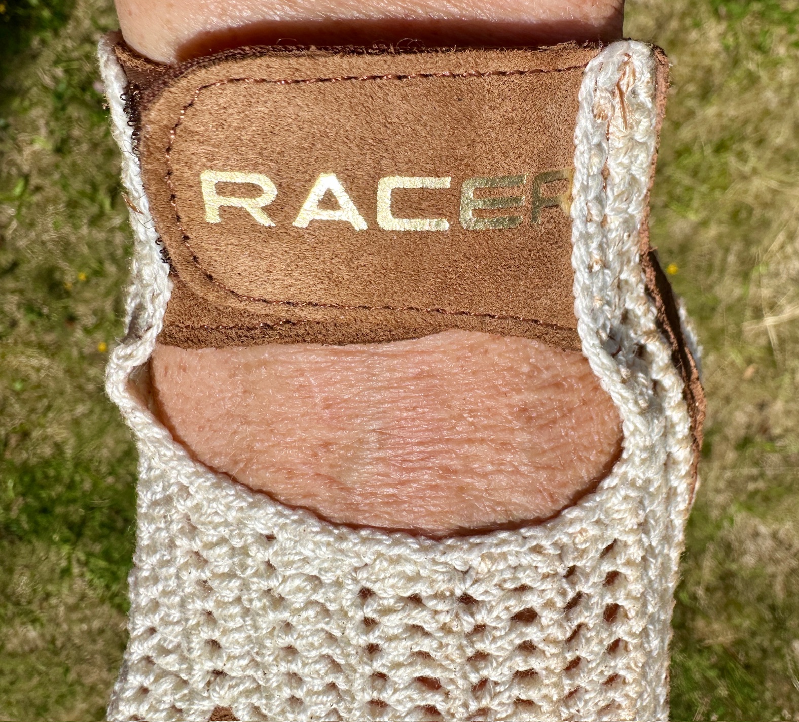 Mit Aufdruck "RACER" auf dem Klettverschluß, der der Weitenregulierung auf dem Handrücken dient.