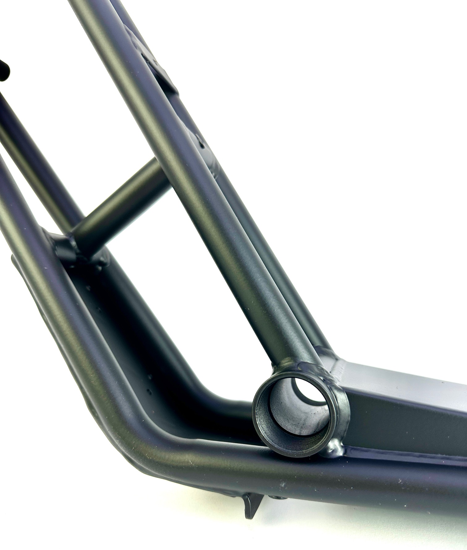 Der UNI Swing E-Bike Rahmen kommt im klassischen Mofa Design mit dem bequemen Tiefeinstieg und kann mit allen UNI Swing Sitzen und UD-Racks ausgestattet werden – ganz wie du es wünschst. Er ist zu 100% aus hochwertigem ChroMo Stahl in Deutschland gefertigt.