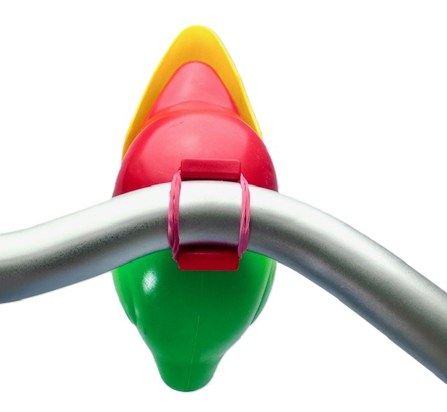 Mittels Gummiring kann diese vintage Fahrradhupe an jedem Standartlenker von z.B. Kinderfahrrädern, Kinderlaufrädern, Roller oder Dreirädern montiert werden.