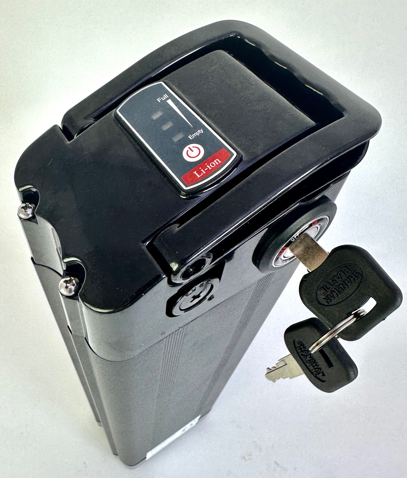 Das Zündschloss der Batterie hat drei Positionen: Unlock, Off, On – durch die Bauform passt der Akku in jedes UNI MK, Bobber, Swing E-Bike und ist blitzschnell ausgetauscht.