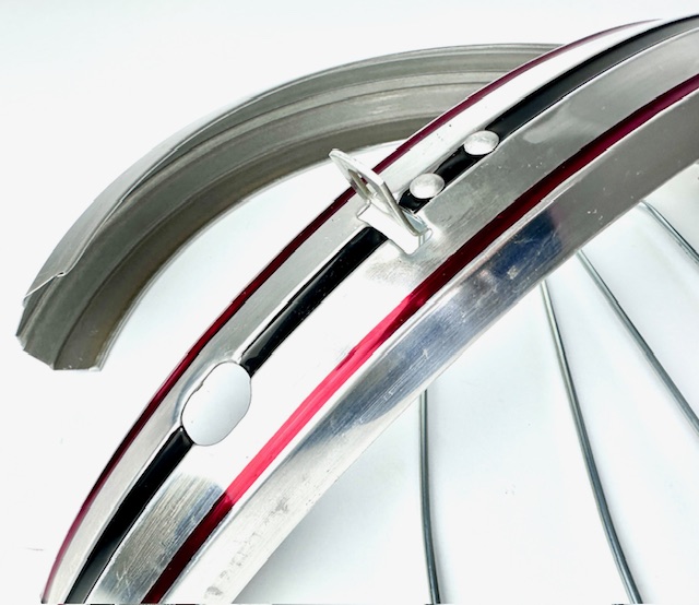 Vintage Schutzbleche mit Stahlstreben für 16 Zoll Räder, silber liniert
