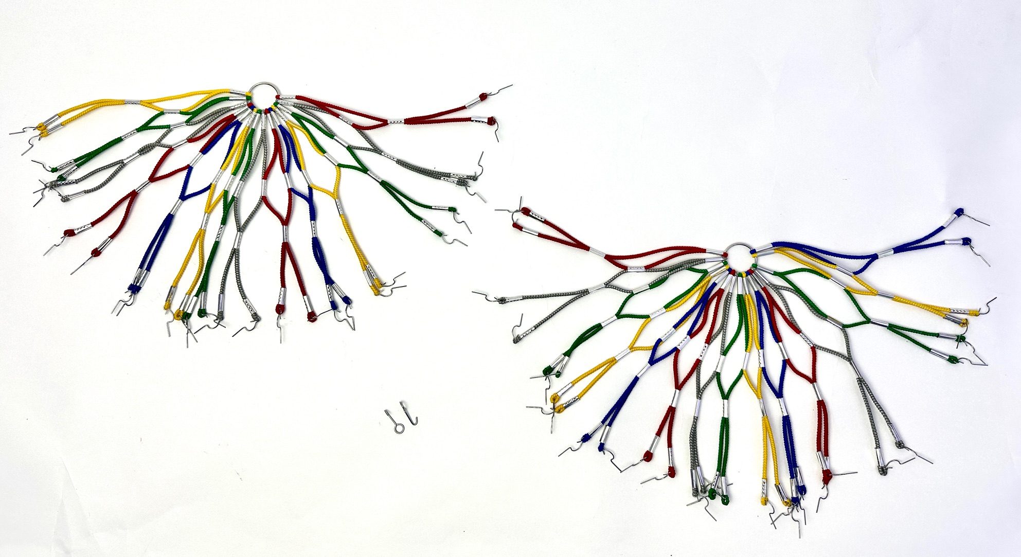 - Die 2 mitgelieferten Haken werden z.B. am Anlötsockel der Schutzblechstreben oder Gepäckträgerstreben montiert und können dort den Ring der Mitte des Kleidernetzes aufnehmen.